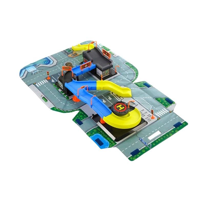 mainan track mobil-mobilan dilengkapi dengan spiral track dan suasana di kota