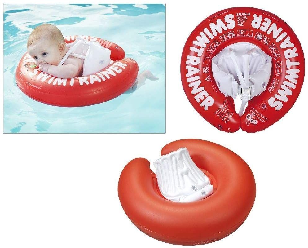 The swimtrainer classic red places baby in the correct position for learning to swim, allowing them to safely practise their kicking.