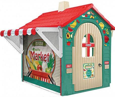playhouse dengan tema market seperti sedang berjualan, pintu yang dapat dibuka dan ditutup seperti toko di pasar